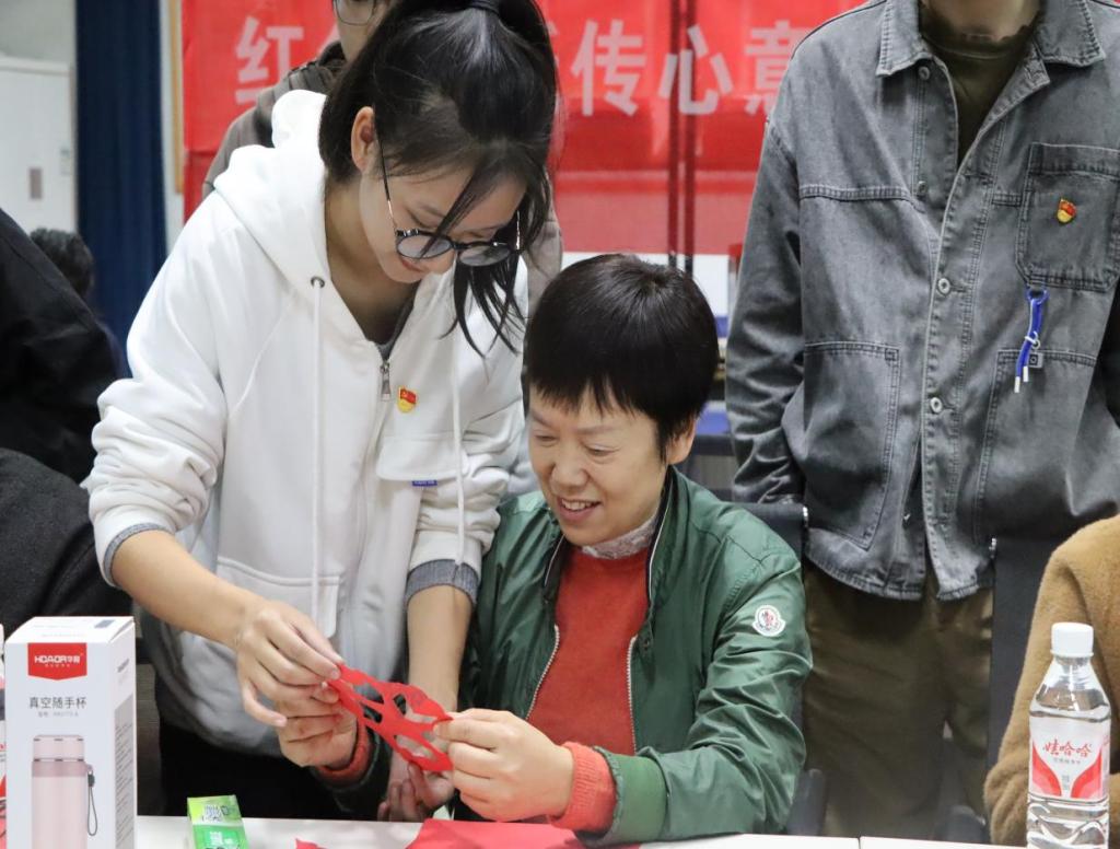 活动开始,全体参与活动的党员共同学习中国共产党第二十届三中全会的内容,领悟其中的深刻内涵并组织进行党的知识问答。在学习过程中,各位党员们全神贯注,对重要内容进行记录并写下了一些自己的感悟;在知识问答过程中,大家积极参与回答,脸上洋溢着自信的笑容,充分体现了他们对党的知识的掌握和身为一名优秀中国共产党党员的自豪。随后,组织进行剪纸活动的开展,青年党员们通过视频学习后与离退处老党员们一起动手尝试一些简单的剪纸技巧,一刀一剪都充满了对革命历史的敬意和对红色文化的热爱。经过一番认真专注的制作,一幅幅独一无二的剪纸作品跃然眼前,它们栩栩如生,各具其韵,这不仅仅增进了青年党员们与老党员们之间的交流,也让剪纸这一传统文化焕发出新的生命力。在剪纸活动结束后,老党员林家佐同志分享了他作为一名优秀中国共产党党员在过去外出积极宣传党工作的故事并对青年党员们组织的此次活动表示感谢。活动最后,由新生志愿者合唱《祖国不会忘记》并合影留念,铿锵有力的歌声、感人肺腑的歌词将每个人心中的爱国主义情怀推向高潮,久久难以平息。