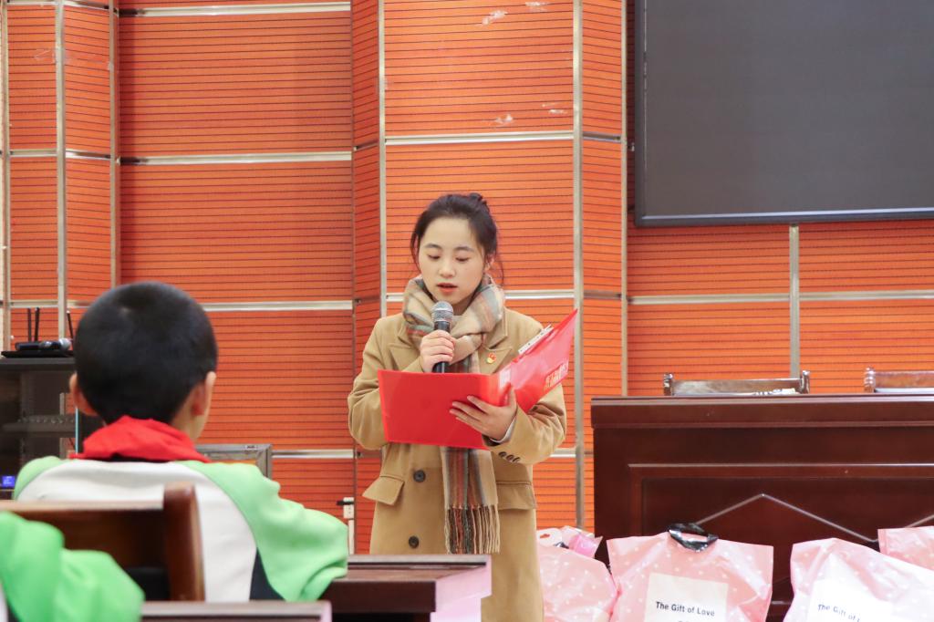 捐赠仪式上,大学生党员、励志奖学金获得者袁丹妮进行演讲,引导同学们传承伟大的红色使命,将先辈们用热血与生命铸就的精神火炬传递下去,号召孩子们胸怀祖国,将个人的成长与国家的命运紧密相连,为实现中华民族的伟大复兴贡献自己的力量。