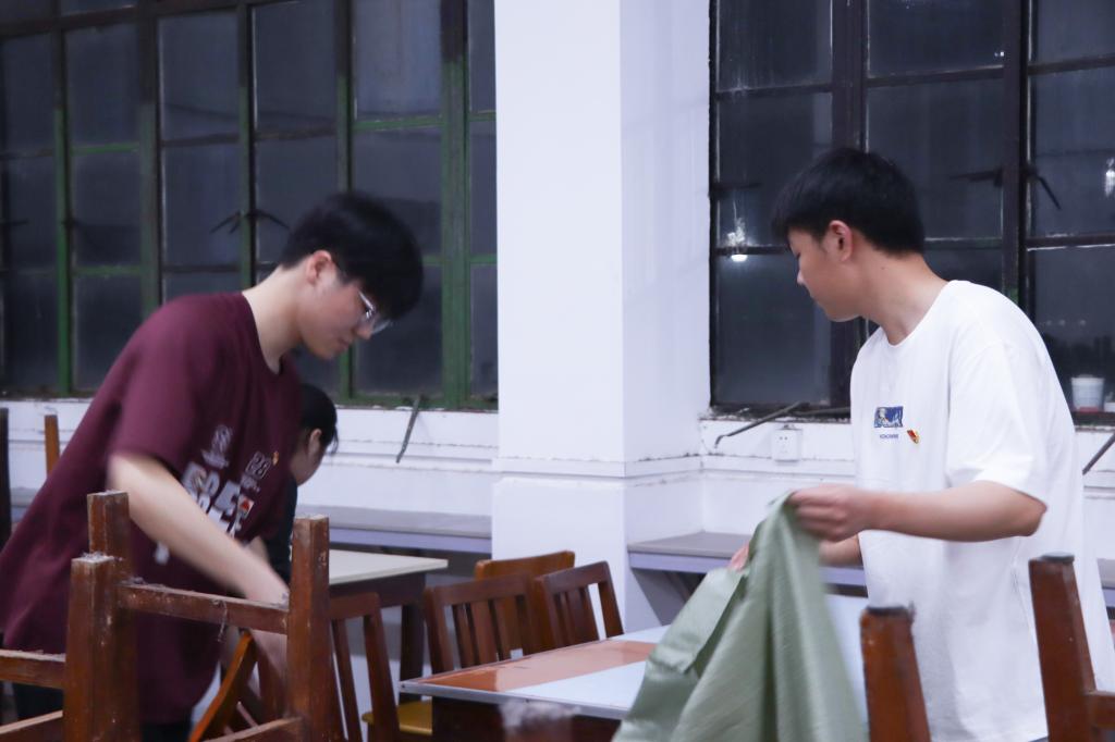 自习室内,堆积如山的资料、凌乱摆放的文具,以及桌椅上各门功课的笔记见证了考研学子们的辛勤付出。面对这一情景,各支部学生党员迅速分成资料整理和卫生清洁两个小组,投入这场扫除活动。