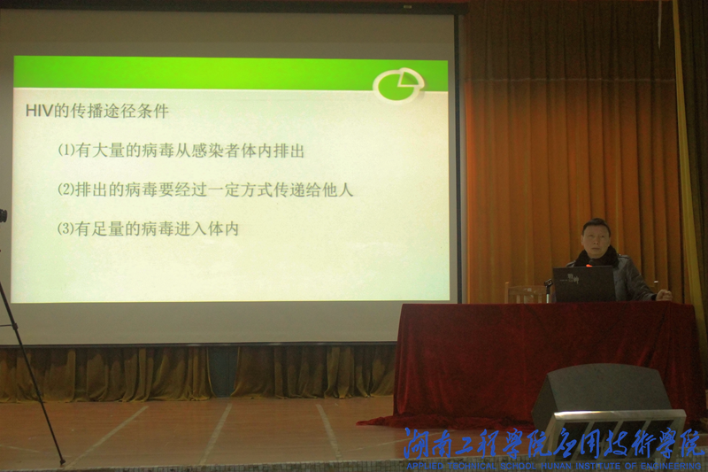郑鸣教授首先阐述什么是艾滋病,艾滋病是由人免疫缺陷病毒引起的慢性传染病,目前比较致病的主要是HIV-1型。艾滋病的主要传播方式有性传播、母婴传播及血液传播。郑鸣号召全体学生要规范采血,与人不共用剃须刀刮胡子、牙刷牙膏、不滥交等方式来阻断艾滋病毒的传播。