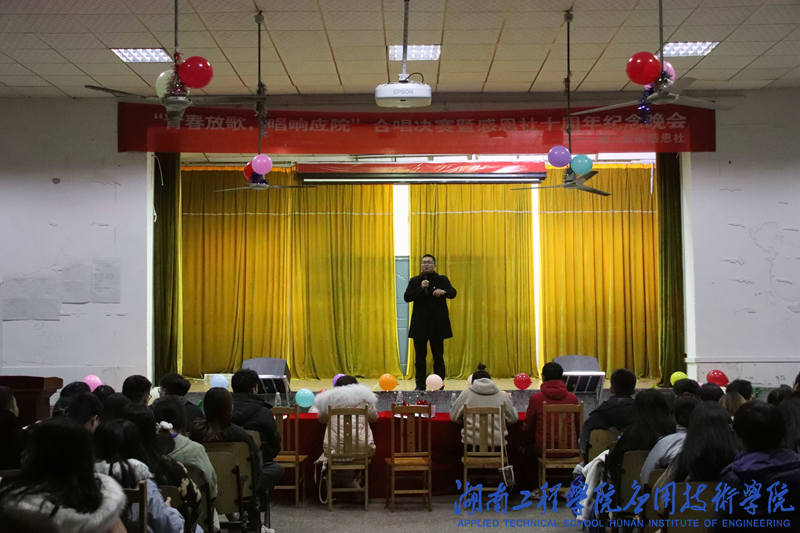 12月18日19:00,beat365官网在南一教四楼举行“青春放歌,唱响应院“大一新生合唱决赛暨感恩社十周年纪念晚会。出席的领导及评委老师有学生工作处处长徐粤宇,学院党委副书记陶连洲,学生工作办公室主任刘红石,学生辅导员曹时艳、周舟妤栎、佘安。