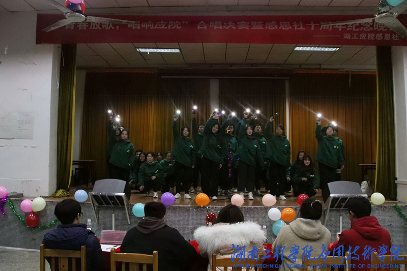 首先出场的是文体中心,他们为大家带来了一场创意满满影子话剧,剧中讲述了一对从高中到大学的情侣,由于生活中的琐事两人渐行渐远,引得观众唏嘘。紧接着的是工商2081班带来的《最美的太阳》手语歌曲,他们穿着统一的服装,用整齐划一的动作伴随着洪亮的歌声。在表演的空隙中,他们扬起手电筒在空中画出完美的弧线,场下观众也纷纷举起手中的荧光棒向他们挥舞着。随着音乐响起,街舞社社员华丽的入场,他们随着节奏摆弄舞姿,场下掌声如潮。土木工程2083班《骄傲的少年》,指挥员行云流水的指挥和他们采用升乐式的演唱方式更显磅礴气势,中间融入了说唱,为表演起到了画龙点睛般的作用,最终也赢得全场最高分。