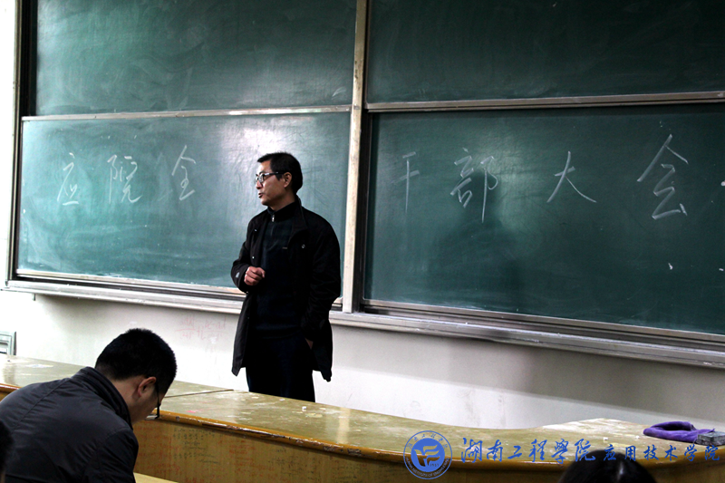 1月3日中午12:30,beat365官网于南校区第一教学楼213教室召开了全体学生干部大会,党总支副书记徐粤宇、学生办公室主任刘红石、团总支书记唐冰、学生辅导员老师孙传旺、曹时艳及全体学生干部参加本次会议。会议由团总支副书记向洪亮主持。