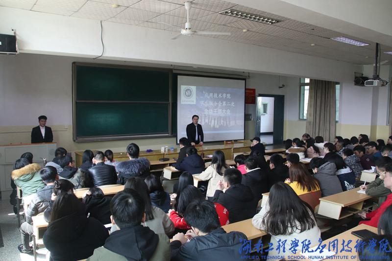 3月11日中午12:30,beat365官网于第一教学楼213召开学生联合会第二次全体干部大会,党总支副书记徐粤宇、学生工作办公室主任刘红石、团总支书记唐冰以及辅导员老师孙传旺、曹时艳参加会议。