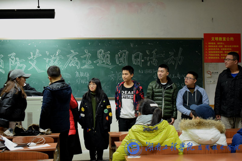 各班悉心布置场地,精心策划活动,认真组织团日活动,各班通过游戏、辩论赛、知识竞赛、演讲等不同形式开展活动为同学们普及防艾知识。电信1681、会计1682的同学们用“奉献爱心,携手同行,关注防范,共抗艾滋”和“同心同德,共牵红丝带;群策群力,同防艾滋病”两大主题告诉大家虽然艾滋病不能治愈,但是可以有效预防。英语1682班杨洋发表了题为《你必须知道的10条艾滋病知识》的宣讲,有层次地介绍了艾滋病相关知识,并呼吁大家从自身每一个细节做起,携手共同做好防艾工作。人力1581班则开展了以“艾滋病患者应该关爱还是远离”为辩题的辩论会,正反两方据理力争,各执一词,运用严谨的论点论据展开论证,上演了一场别开生面的辩论会,让同学们对艾滋病的各个方面有更加深入了解。有“艾”不可怕,可怕的是没有爱,电信1581班以此为本次“防艾”主题团日活动的核心——警醒同学们应该理智去看待艾滋病患者,并给予艾滋病患者足够的关怀。国贸1581、国贸1582、产设1581、环设1581的同学们都采用了知识抢答竞赛的方式,给同学们上演了一场精彩的“防艾大戏”,以此让同学们更加深入了解艾滋病及其患者。活动现场热火朝天,同学们积极抢答,兴趣盎然。