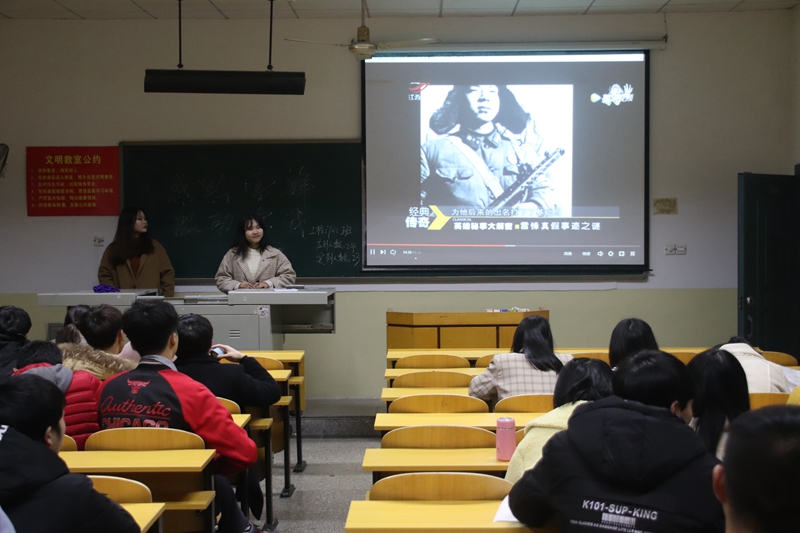 大厅中,各个班级绘手绘的宣传海报整齐地张贴在墙上,当雷锋形象跃于眼前,不禁令人肃然起敬。班会伊始,各班观看了纪录片《雷锋的故事》。该片讲述了雷锋的一生,以雷锋的日记为线索带大家走进这位平凡的英雄,观看短片后同学们对雷锋有了更深的认识。当代大学生应怎样学习雷锋?各班同学积极讨论发言,通过讲述雷锋故事,大家纷纷表示学习雷锋要先从身边小事做起,同时学习发扬雷锋精神,要持之以恒,要摒弃浮躁和功利心态。