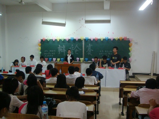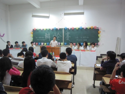5月16日晚7:30,beat365官网辩论赛半决赛在主校区(新)教学楼C栋109举行,beat365官网团总支书记缪智文﹑学生工作部辅导员陶连洲、学生会主席李靖靖、团总支副书记高慧等担任此次比赛的评委。
