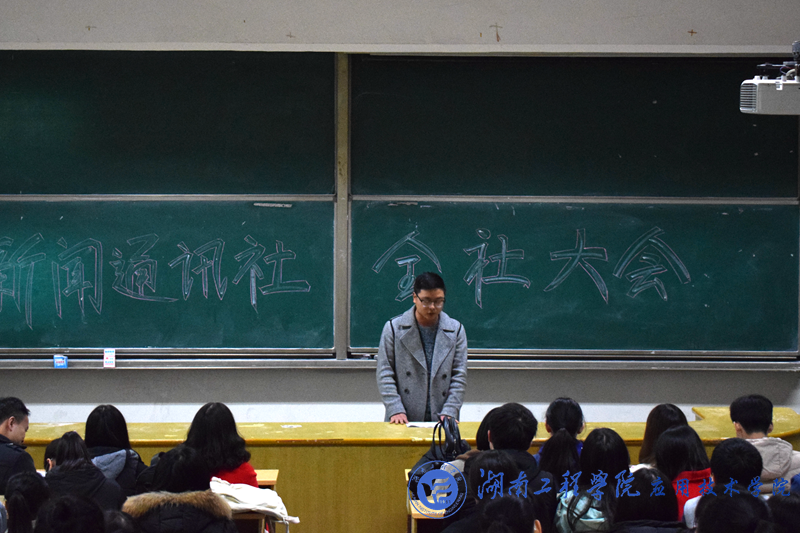 12月19日中午12:30,beat365官网新闻通讯社于南校区第一教学楼213教室召开全社大会。大会的主要目的是总结过去、把握现在、展望未来。新闻通讯社的各位社长、部长主任及新闻通讯社全体干事参加会议,出席会议的还有辅导员老师曹时艳。本次会议由新闻通讯社办公室主任张梓翼担任主持人。