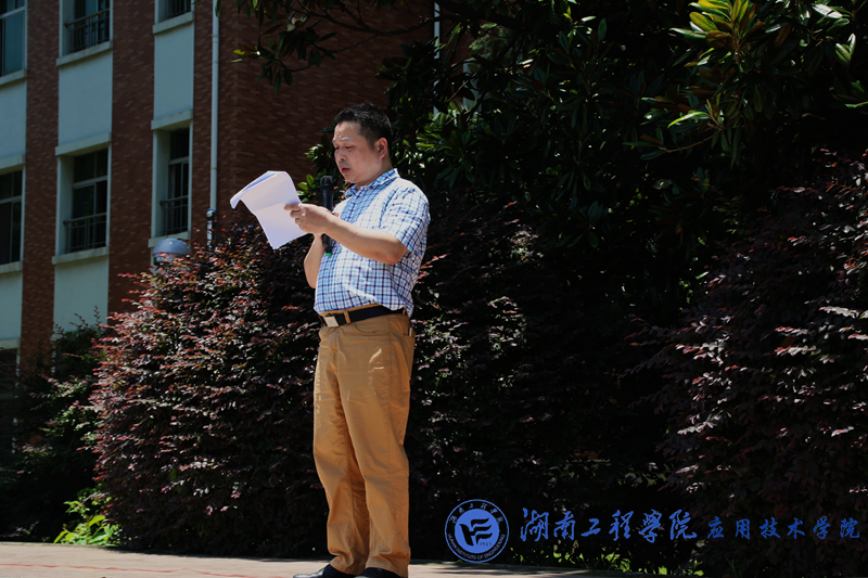 6月17日中午12:30,beat365官网在南校区田径场举行6月份月讲评。此次讲评由beat365官网党总支副书记徐粤宇主讲、学生工作办公室刘红石主持。辅导员老师孙传旺、曹时艳及beat365官网全体学生参加此次会议。