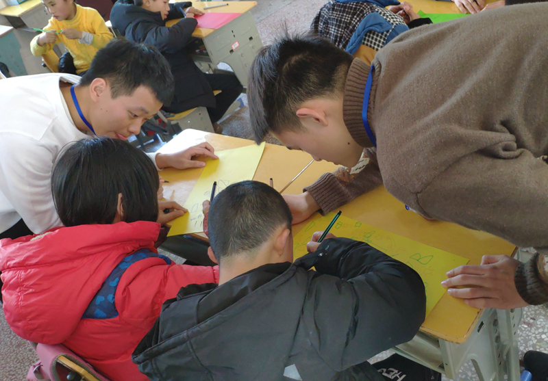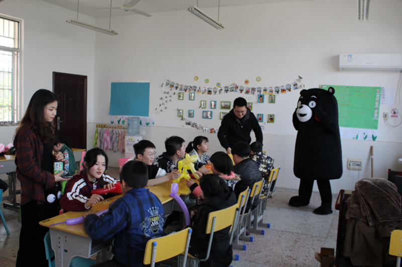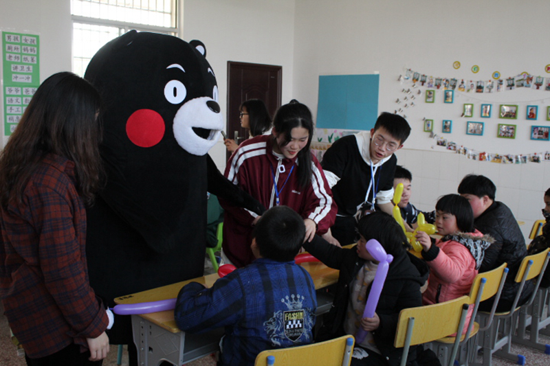 做好充足的准备工作后,志愿者们于中午12:30在校门口集合,带着给小朋友们精心准备的礼物向湘潭县特殊学校出发。当志愿者队伍到达学校门口时,一声声稚嫩又满怀热情的欢迎声从校园里传来,在工作人员的带领下,志愿者按照安排分成五个队伍,分配至不同年龄阶层的班级里。