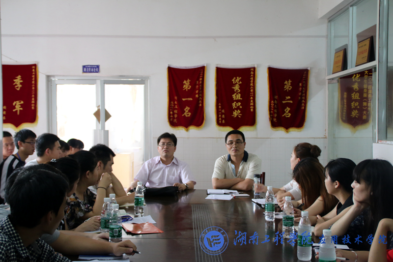 5月19日下午1:00,beat365官网在新校区亲民会议室召开了以“学风建设”和“宿舍卫生建设”为主题的干部会议。beat365官网党总支副书记徐粤宇和学生工作指导老师孙传旺出席此次会议,全体主席团成员和学生会常务部门部长到会。