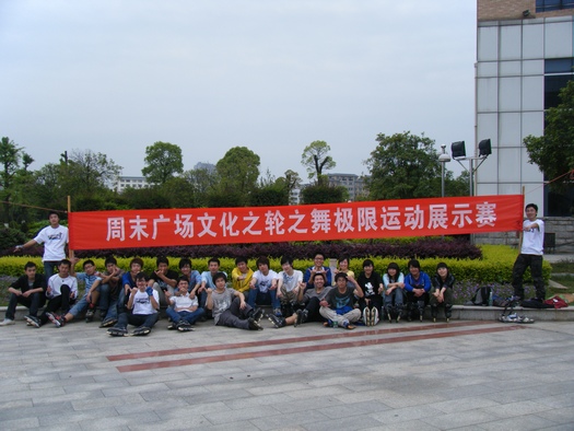此次轮滑运动表演云集了各校区轮滑运动爱好者,共有30多名轮滑社会员参与表演。下午2:00表演正式开始,图书馆广场热闹非凡,精彩的轮滑表演吸引了很多同学和轮滑运动爱好者的眼球,里三层外三层的围成了几个圈,大家不断拍手叫好将活动推向了一个又一个的高潮。在“轮之舞”轮滑社社长李伟同学的指挥安排下,表演者们先后为大家进行了“刷楼梯”、“花样竞速过桩”、“集体花样轮滑”、“轮滑刹车技巧”和“集体轮滑开火车”等项目的表演,大家高涨的热情传遍了整个广场,活动在欢快的气氛中进行,高潮迭起,社员们的精彩表演,赢得了围观同学们的阵阵掌声。轮滑表演结束后,各校区的社员们与轮滑爱好者们相互交流技巧,并合影留念。