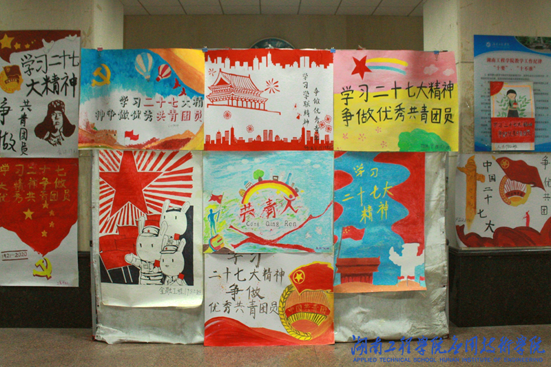 各班级积极组织,精心制作相关主题海报,围绕“学习二十七大精神,争做优秀共青团员”主题开展了形式多样的活动。英语1981班、英语1982班、旅游管理1981班、产设1981班等班级通过PPT讲述,观看相关主题视频的方式向同学们介绍有关二十七大会议的知识。英语1981班、英语1982班在学习会议精神后还组织同学观看电影《我和我的祖国》,鼓励同学们树立理想信念,勇于担当时代赋予的历史责任。