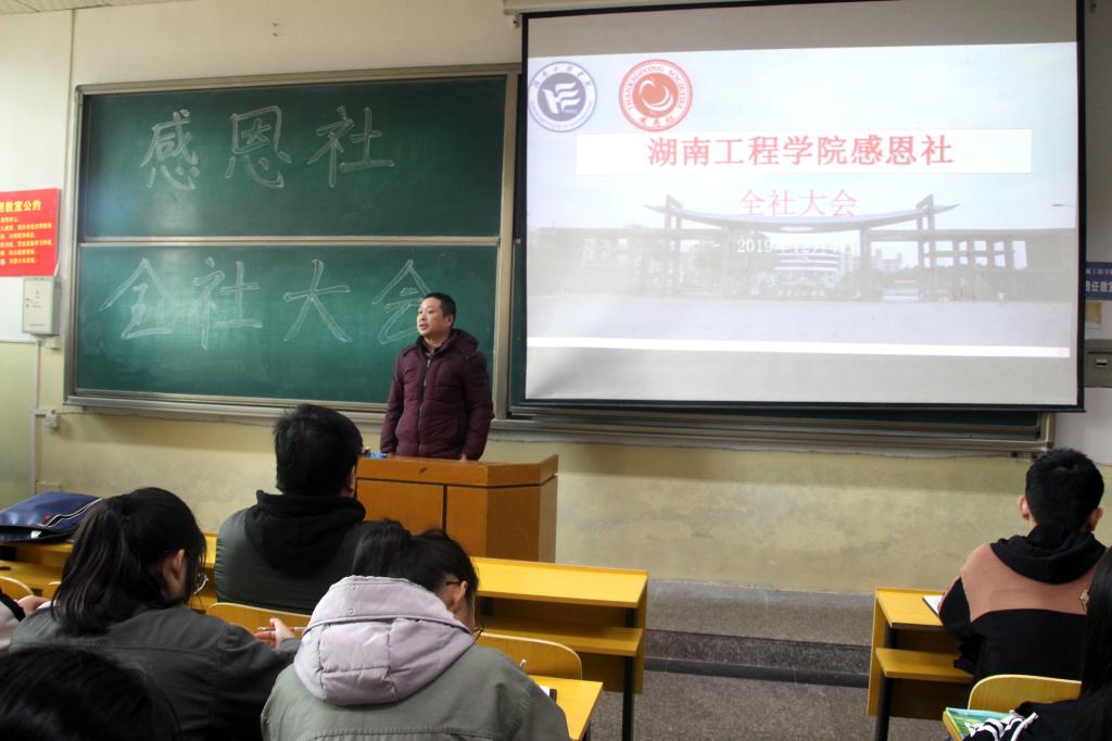 刘红石做总结陈词,他对感恩社这学期以来的工作给予了高度的肯定,强调了作为一名学生,首先要学会感恩,感恩父母、老师和社会;其次是要加强学习,紧跟时代步伐,了解相关时政,提升自我思想政治站位。