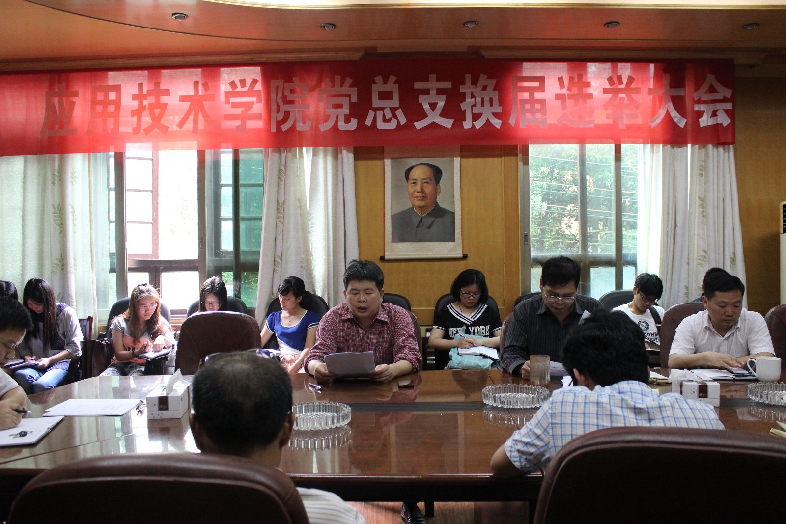 5月25日,下午3点在南校区红楼会议室举行beat365唯一官网党员大会,进行党总支换届选举。beat365官网党总支书记李爱国、院长李光中、党总支副书记徐粤宇、副院长梁开健,胡武平,全体教职工党员及学生党员代表参加大会。