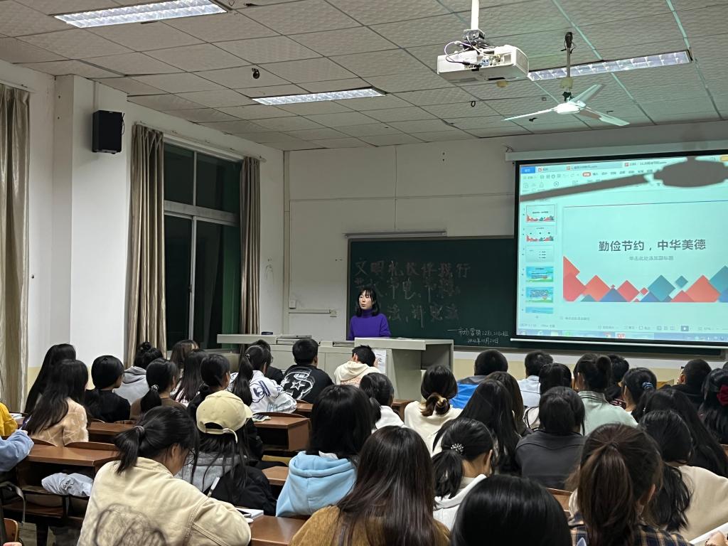 为进一步深化学风建设,提高学生文明礼仪素养,11月20日晚,beat365官网在第一教学楼开展“学风建设月”主题班会。此次班会以“节水、节粮、节电”、“学宪法、讲宪法”和“文明礼仪伴我行”等为主题,2022级37个行政班级1000余人参加主题班会。班主任、学办辅导员深入班级进行指导。