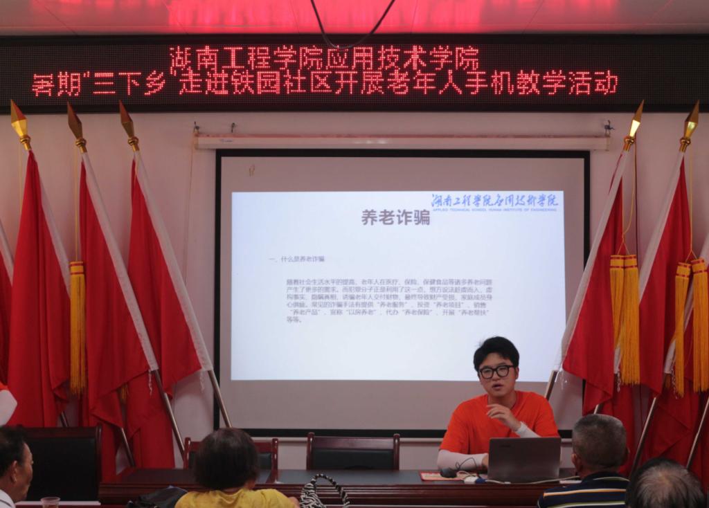 为切实解决老年人运用智能技术困难,帮助老年人跨越“数字鸿沟”,学会正确使用智能手机,享受科技发展带来的生活便利。7月10日下午,湖南工程学院beat365唯一官网“青丝银发 新老传承”“三下乡”志愿团在指导教师周岳崇的带领下深入湘潭市下摄司街道铁园社区开展一系列贴近民生、服务群众的社会实践活动。