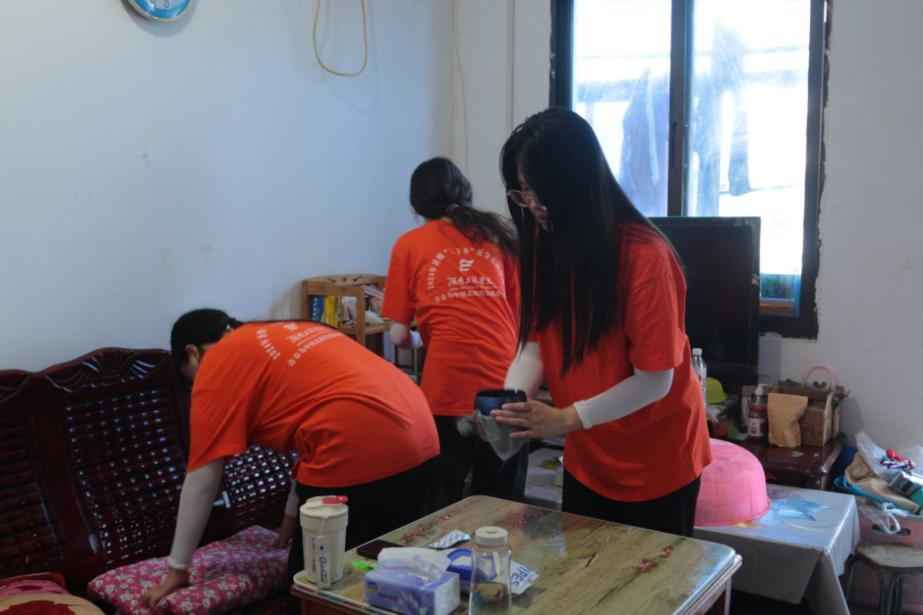 青春献晚晴,敬老情更浓。清晨的第一缕阳光洒落在鸦雀塘社区,上午9点整,实践团的成员们已整装待发,他们分为三个小组,在社区负责人的带领下,分别前往三户老人家中开展居家服务。在老人家中,志愿者们先与老人们亲切交谈,了解他们的生活状况、健康状况以及心理需求。再针对他们的具体需求,提供志愿服务。帮忙打扫房间,清理厨房油渍以及家中各个死角的蜘蛛网等。同时,志愿者们也给老人们进行了智能手机使用教学,从社交软件的使用到如何进行网络购物,对老人们的疑问及时地进行了解答。