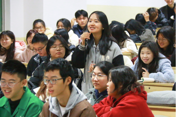 在问答环节,班长、学委围绕教学管理、宿舍管理、图书馆、体育馆、校园环境、学科竞赛等方面提出相关的意见和建议。学院各分管领导对同学们的问题和建议进行了记录并现场回应解答。