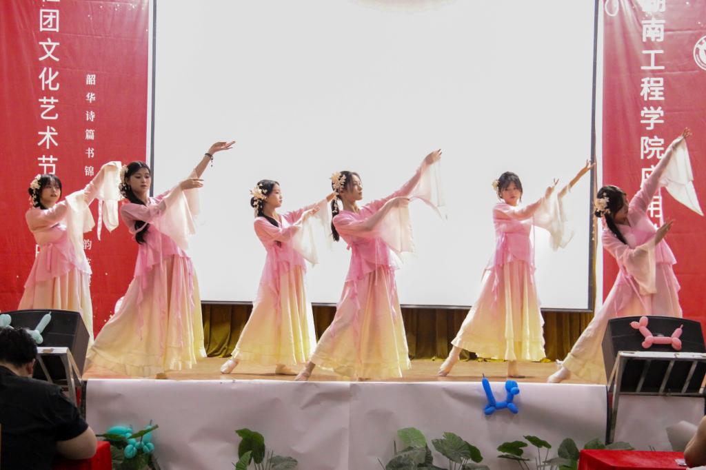 传统与现代的碰撞贯穿全场。古风曲艺社的《杨柳依依》将水袖舞与江南意境相融合,演员们轻盈的舞姿仿佛水墨画卷徐徐展开;中国舞协会的《春颂》则以舒展的肢体语言演绎万物复苏,衣袂翩跹间传递出中华文化的隽永韵味。与之形成鲜明对比的是B&G街舞社的三段式表演——从展现都市时尚的《都市丽人》到充满张力的《Problem vs Drip最后全员齐舞的《B&G dance》,三种风格的切换引爆全场。