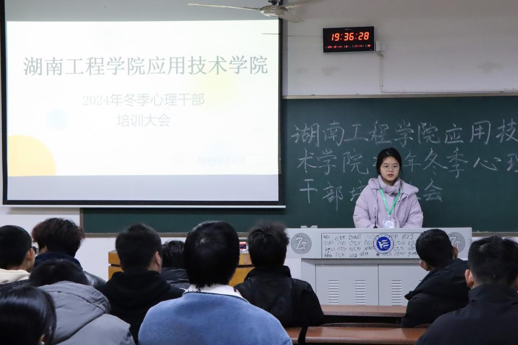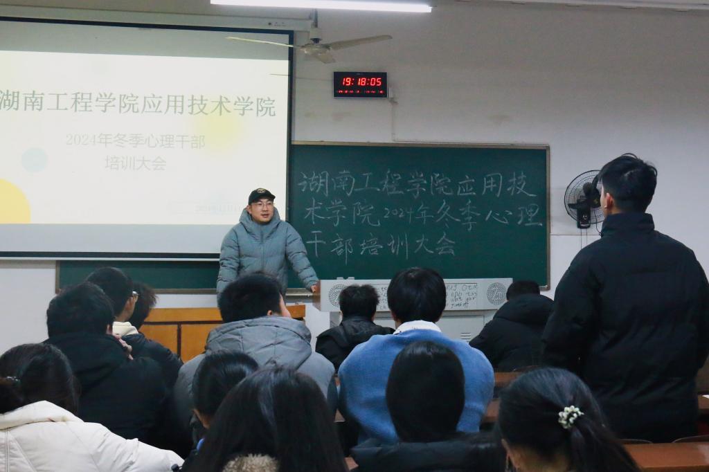为持续推进心理健康教育工作,准确把握学生心理健康动态,12 月 11 日,我院在第四教学楼101教室举行全院心理干部培训大会。学院心理专干辅导员周岳崇,学生会心理部成员和全体心理委员参加本次会议。