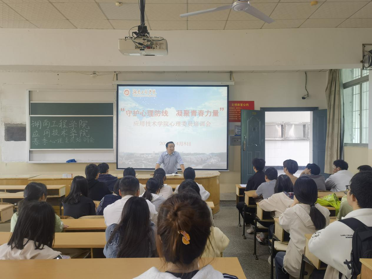 为进一步加强心理委员队伍建设,提升朋辈心理互助能力,4月8日中午,应用技术学院在书院路校区一教学楼213室举办2025年度心理委员专题培训会。本次培训以“守护心理防线 凝聚青春力量”为主题,学院党委副书记李魏达、心理专干辅导员周岳崇、学院心理部全体成员参会。