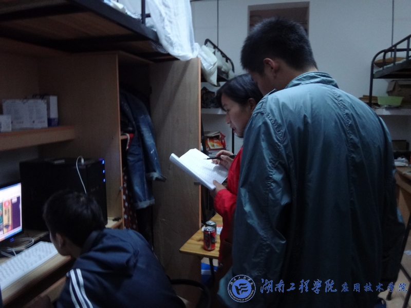 检查组就寝室安全、内务卫生及大功率电器的使用等事项进行了严格检查。徐粤宇、章平、蒋淑亚等十分耐心的进行了各项检查,反复叮咛同学们要及时处理垃圾,整理好被子与书桌,并且强调严禁使用各种大功率电器。检查组的老师还和同学们进行了亲切的交流,询问同学们的学习情况以及班级情况,并鼓励同学们努力学习。老师还要求学生会干部、干事对寝室出现的漏水等问题一一进行登记,尽快使这些问题能够得到妥善的解决。同时为了保障同学们的财产安全,老师们还特意嘱咐同学们要将自己的电脑等贵重物品保管好,千万别因为一时疏忽造成不必要的损失。对于少数存在安全隐患的寝室,检查组及时进行了批评教育,并为他们讲解其中存在的危害,强调学校将会对大功率电器进行严查,如有违者,学校将按规章制度进行处分。希望大家能为构建安全和谐寝室做出努力。