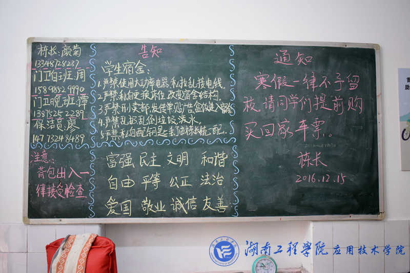 12月16日上午,beat365官网党总支书记李爱国、副书记徐粤宇、学生工作办公室主任刘红石、团总支书记唐冰、宿管专干孙传旺、辅导员蒋惠筠等老师分别到学生公寓AB栋、学生宿舍6栋、8栋、10栋、培训楼进行了安全、卫生工作检查,并重点回查了今年评出的“文明寝室”。