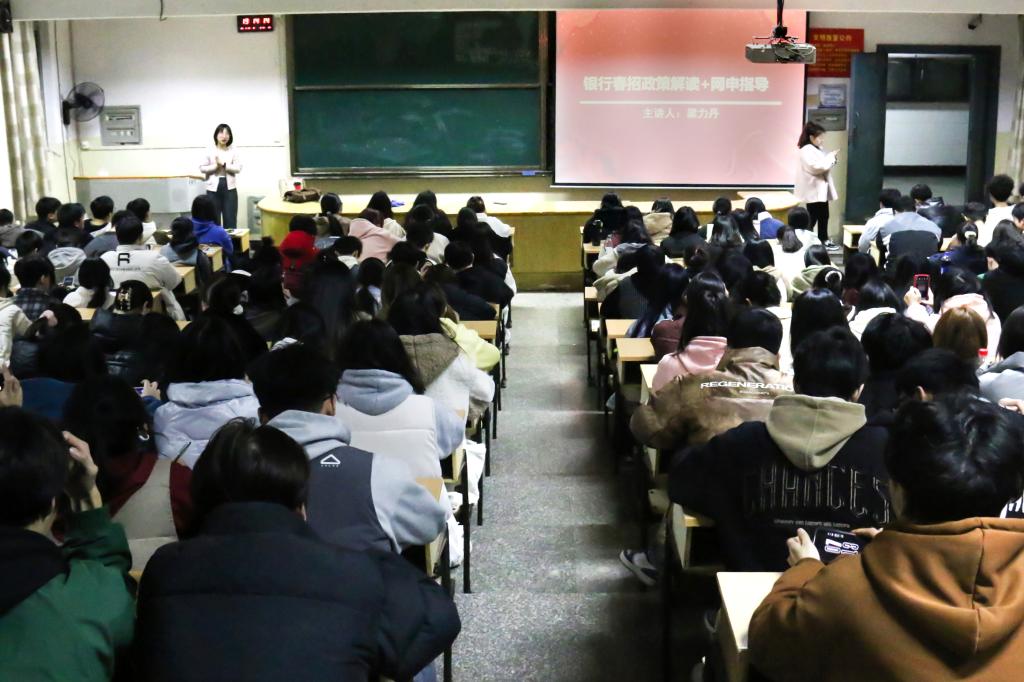 讲座围绕网申展开,梁力丹提醒同学们在志愿填报时要重视个人评价与特长的填写,介绍了注重内容逻辑、合理分段阐述,巧妙运用数字案例与热门词汇等网申技巧。她强调,网申要秉持诚信原则,如实展现自身能力与经历,提前做好准备,充分了解目标银行,有的放矢,提高成功率。