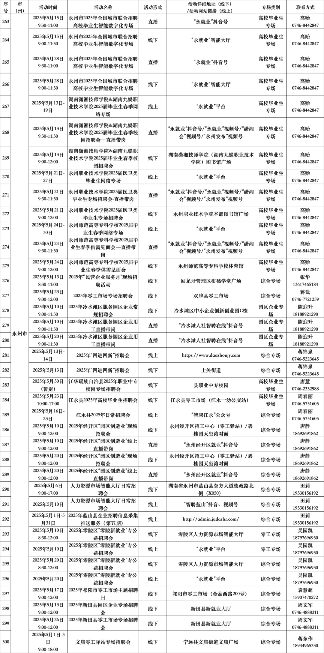 扫码查看“5月全省公共招聘活动预告信息表”(具体活动安排按实际举办地为准。)