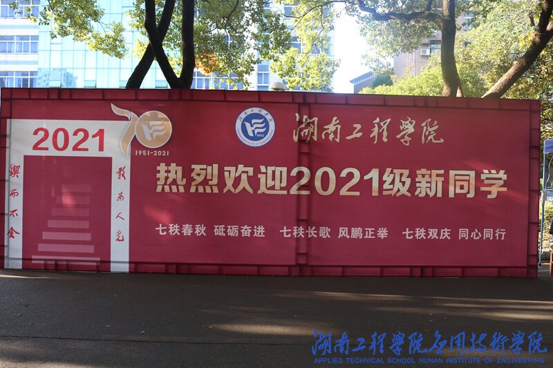 走进学校大门,路边温馨手绘标语及各处欢迎2021级新生到来的红色条幅和背景牌,都彰显着迎接新生的热烈、喜悦气氛。