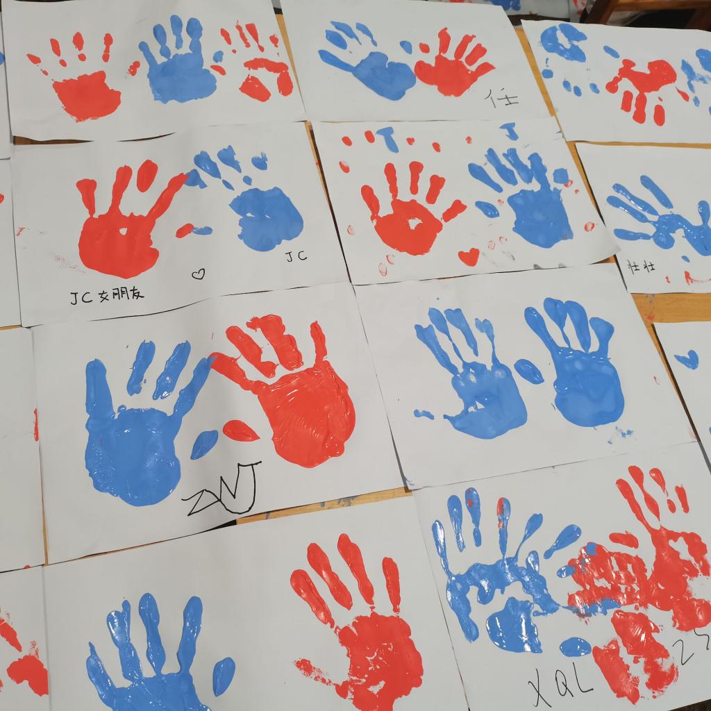 “来来来,一二三......”用你我的手印见证此刻的快乐,用美丽的色彩去迎接夏天的到来。同学们们结伴而来和朋友蘸色印下彩色手印,参与的同学脸上都洋溢着笑容,现场一片欢声笑语,气氛热烈快乐。