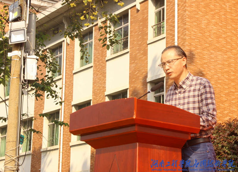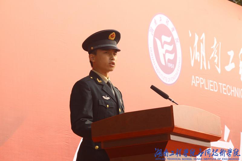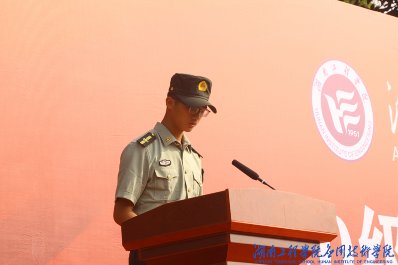 英语2081班何子敬作为军训学员代表发言,他总结了军训的苦与乐,成长和收获,并向全体新生发出号召,要担当起党和人民赋予的历史重任,在激荡青春、创造人生、奉献社会中,书写无愧于时代的壮丽华章。四营三连三排长申志蓬代表教官团发言,他祝贺同学们圆满完成军训任务,希望他们以军训为起点,在以后的学习生活中以坚持不懈和自强不息的态度直面挑战、战胜困难。退伍学生代表蒋林钢发言,作为一名退伍学长,他希望学弟学妹们继承和发扬军训中培养的优良传统与作风,努力学习科学文化知识,谨记“锲而不舍,敢为人先”的湖工校训,珍惜青春年华,勇担时代使命。