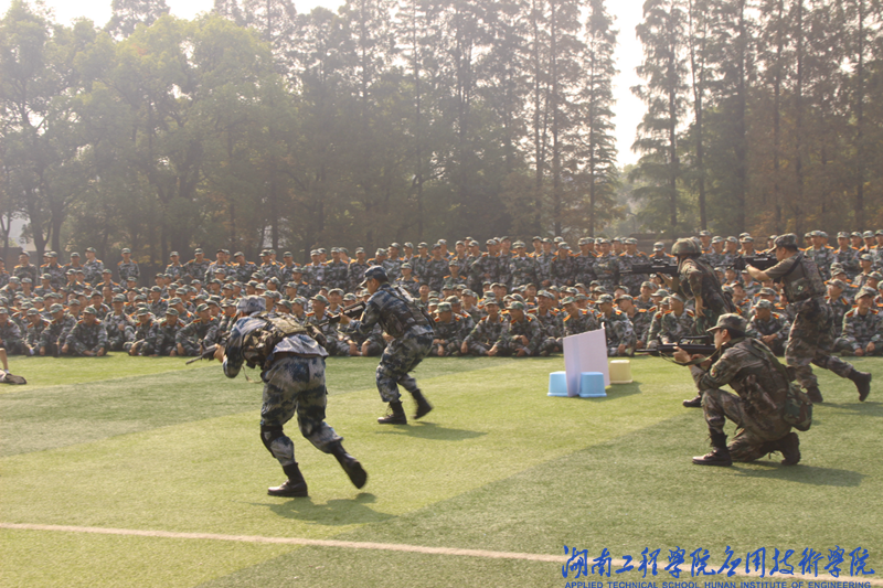 上午9点,伴随着庄严的国歌,大会正式拉开帷幕,分列式检阅正式开始。伴随着雄壮激昂的军歌进行曲,2020级新生组成的9个方阵迈着整齐的步伐,喊着响亮的口号、英姿勃发地从主席台前踏步通过。每一个挺直的腰板,每一个鼓点下的踏步,充分展示了两周军训的成果和2020级新生昂扬向上的精神风貌。分列式后退役复学老兵表演特种战术,掩护,前进,强攻到最后精准击毙“恐怖分子”,震撼全场,引来一片欢呼喝彩。