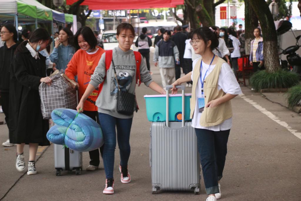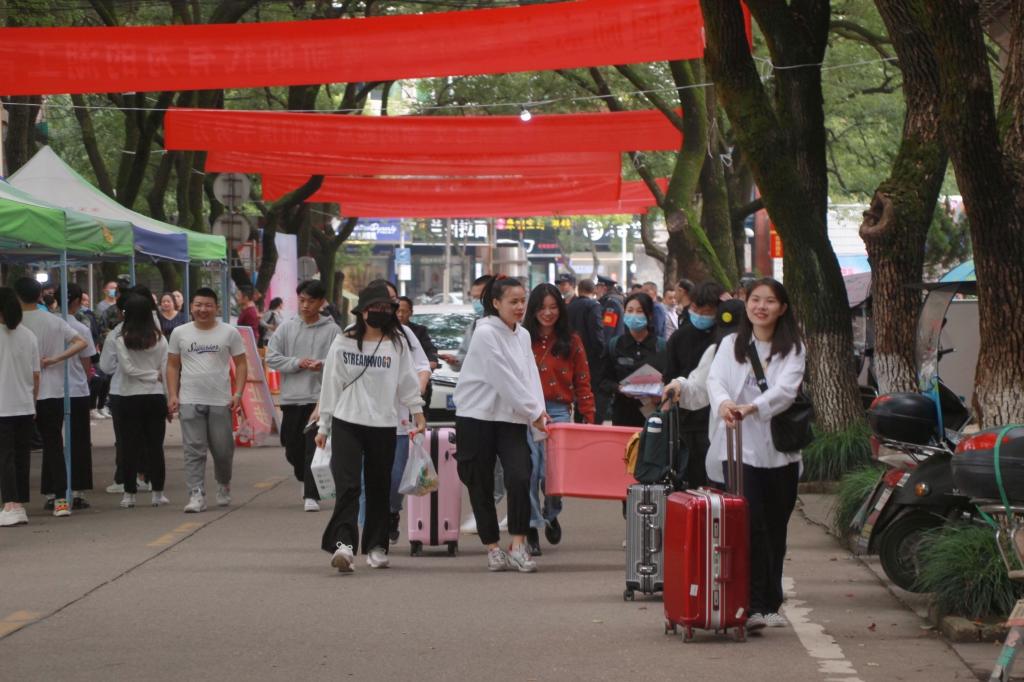 今年因为疫情防控的需要,家长不能陪同进校园,新生独立进校报到。为帮助新生顺利报到,学院实现学生志愿者与新生“一对一”对接服务,身穿红色马甲的迎新志愿者,引导新生完成注册报到、帮忙提取行李、领取生活用品、介绍校园基本情况、带领新生熟悉学校各地方。志愿者们热情周到的服务很快消除了新生们初来乍到的陌生感。新同学对志愿者们的热情服务表示感谢,并表示以后愿意加入迎新工作者的行列,以回报学长学姐们的热情付出。