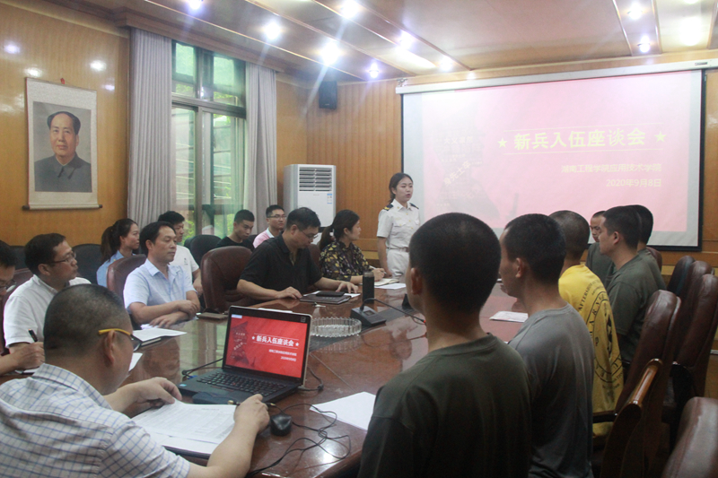 9月8日15点,beat365官网2020年新兵入伍座谈会在207会议室召开。院长李光中,党委书记黎娅,副院长梁开健、胡武平,党委副书记陶连洲,学生工作办公室主任刘红石,院办公室负责人肖松涛、退伍学生和2020年入伍新兵参加会议。会议由黎娅主持。