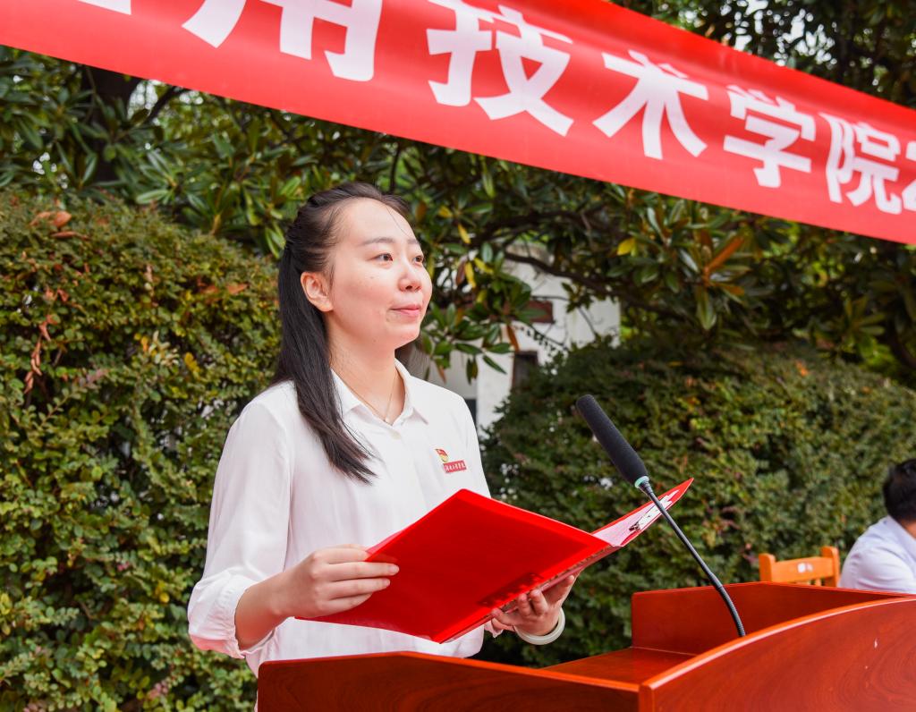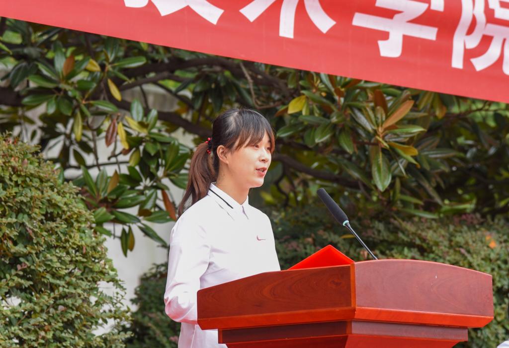 班主任周舟妤栎代表教师发言,希望同学们在大学里要立学、立行、立志,用青春的激情和智慧,点燃心中的理想,脚踏实地,刻苦努力,书写人生精彩的一页。