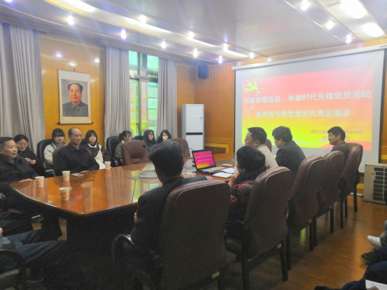 2019年4月11日下午3时,beat365唯一官网在办公楼会议室召开“汲取前辈经验,争做时代先锋——老党员和学生党员代表见面会”,参会人员有:陈运甫、罗佑凯、汤正平、曾去疾、凌扬云、朱建农、李京湘七名退休老党员、beat365唯一官网党总支书记李爱国、副书记徐粤宇,以及24名学生党员代表。徐粤宇主持见面会。