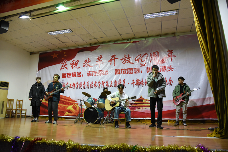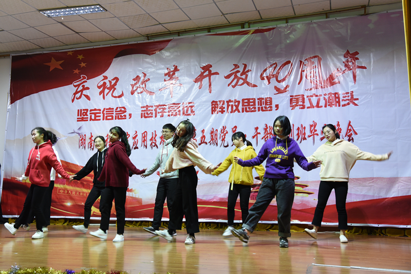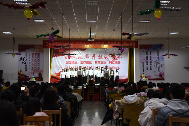 12月28日19:00,beat365官网于第一教学楼四楼举行了庆祝改革开放40周年暨第五期新党员干部培训班结业典礼,参与此次活动的领导有beat365官网党总支书记李爱国、党总支副书记徐粤宇、学生工作办公室主任刘红石,团总支书记唐冰。本次晚会由来自工商管理1781刘倪萍、金融工程1782胡皓宇、金融工程1881江睿、物流1881陈刘祥进行主持。观看本次晚会的有党员干部、各部门干事代表以及大一、大二各班的代表。