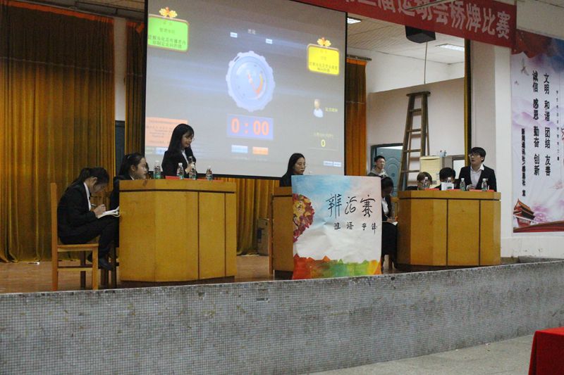 11月12日晚上7:00,beat365官网在一教四楼举行辩论赛开幕表演赛。来自管理学院的四位辩论队队长友情担任评委,比赛由beat365官网辩论队15届队长王君俊主持。