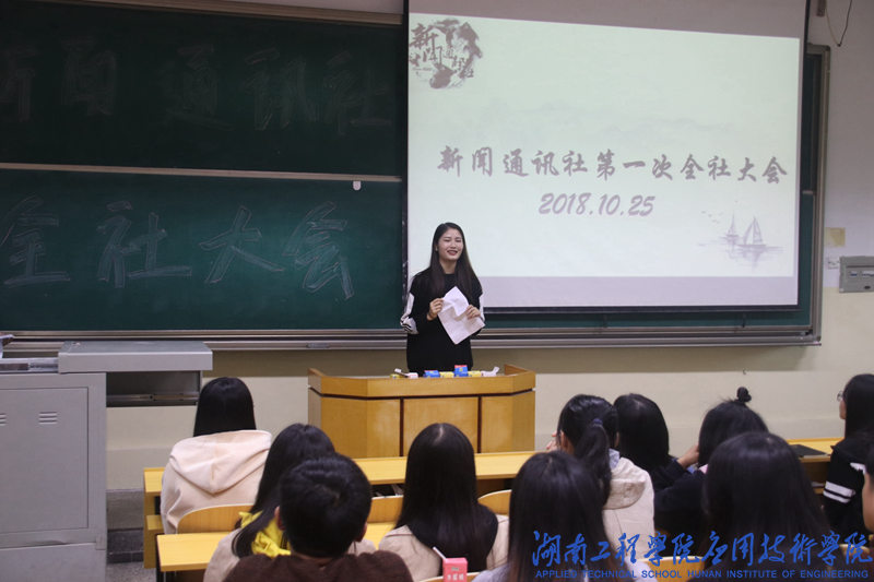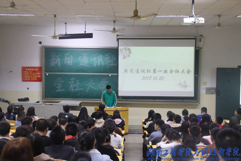 10月25日中午12:30,beat365官网新闻通讯社在第一教学楼313召开本学期第一次全社大会。新闻通讯社社长汤帅,副社长刘思婷、廖章会,以及各部门部长和新闻通讯社全体干事参加此次会议。由办公室谷沐霖担任此次会议主持人。
