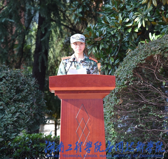 国际经济与贸易1882班文姝沣代表全体军训学员发言,她总结了军训的苦与乐,成长和收获,表示要秉承“锲而不舍,敢为人先”的湖工精神努力学习,锐意进取,书写青春最美篇章。教官团代表彭启量发言,表达对学员的依依不舍,再次强调军训的内涵,希望新生们通过军训的磨炼树立牢固的国防意识,担当好祖国未来的建设者。
