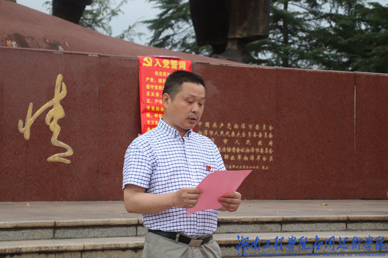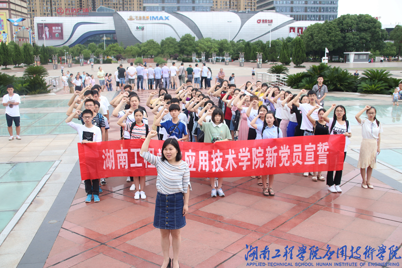 7月1日8:00,beat365官网2018年预备党员入党宣誓仪式暨优秀党员表彰大会于湘潭市东方红广场举行。出席此次仪式的有beat365官网学生工作办公室主任刘红石、团总支书记唐冰、辅导员老师蒋惠筠、曹时艳以及60余名党员。本次宣誓仪式由曹时艳主持。