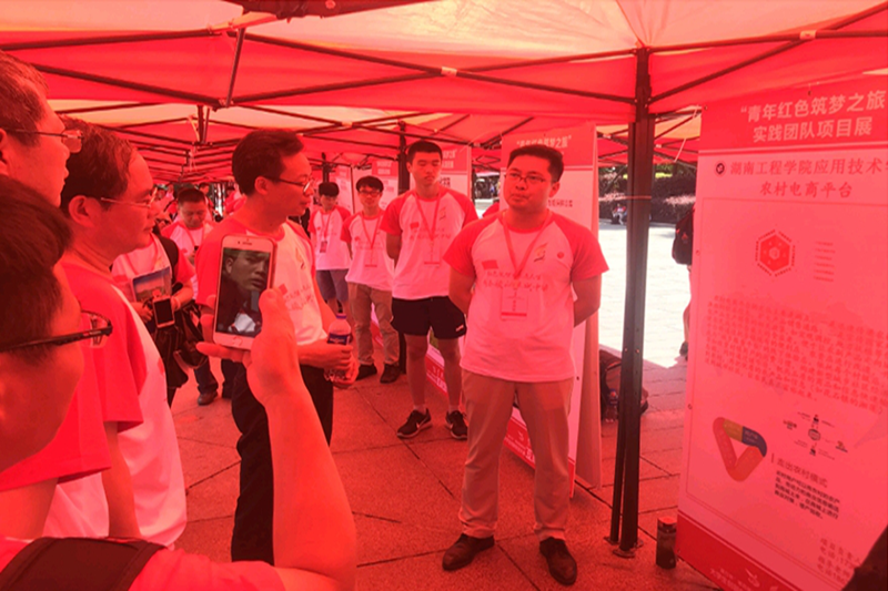 教育部高教司二级巡视员吴爱华,省教育厅党组成员、副厅长、省委教育工委委员葛建中,建设银行湖南省分行副行长戴建军,湘潭市人民政府副市长刘永珍等领导参观了beat365官网现场展示区,听取了徐粤宇对beat365官网“互联网+”大学生创新创业大赛“青年红色筑梦之旅”赛道参赛项目的介绍,各级领导们对beat365官网能着力地方特色经济、扎根农村、振兴乡村、为精准扶贫和美丽乡村建设发力给与了充分肯定和赞扬,吴爱华巡视员要求我们以点带面,扩展领域,葛建中副厅长要求我们加强项目活力,加快项目培育,刘永珍副市长要求我们着力品牌打造和包装。
