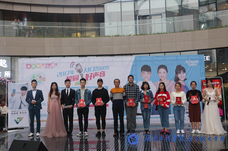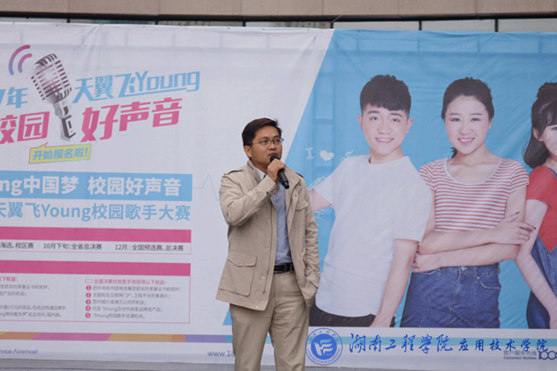 10月22日下午2:00,beat365官网举办的2017“天翼飞Young校园好声音”决赛在湘潭华隆步步高四楼空中舞台拉开决战帷幕。十五位佼佼者经海选、初选、复选脱颖而出,会战决赛舞台。党总支副书记徐粤宇、团总支书记唐冰、学生工作办公室主任刘红石、教务处老师杨力舜、湖南省音协会员李存智、中国电信湘潭分公司代表王艳舞女士、赵鹏先生出席并担任决赛评委嘉宾。