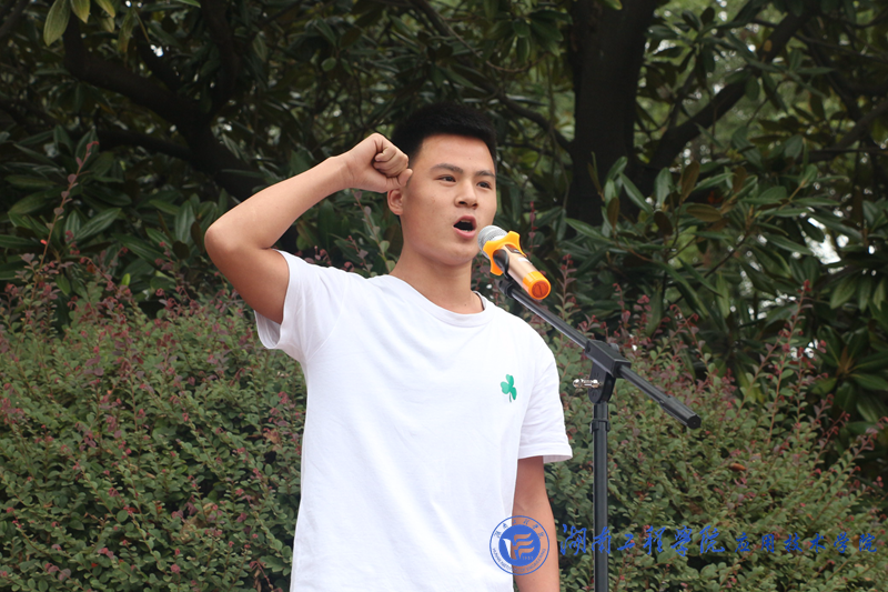 机械设计1681班李思佳和土木1681班朱威分别代表运动员和裁判员宣誓。