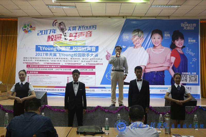 10月8日晚上7:30及10月9日中午12:30,由beat365官网团总支学生会社团部、文娱部及中国电信湘潭分公司联合主办的“天翼飞Young校园好声音”复赛在beat365官网第一教学楼四楼成功举办。beat365官网党总支副书记徐粤宇、学生工作办公室主任刘红石、团总支书记唐冰、教务处老师杨力舜、辅导员曹时艳、蒋惠筠、班主任周舟妤栎以及电信公司代表赵鹏担任评委,本次比赛共有44名选手参赛,将选出16名选手晋级决赛。