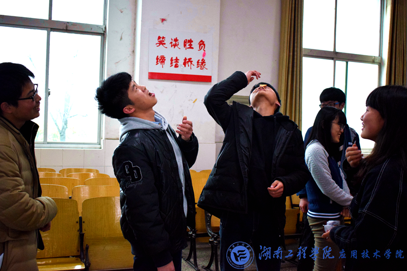 首先,校舞蹈队带来开场舞《cheer up》,动感十足的舞蹈瞬间点燃活动气氛。比赛在一片欢呼热闹声中开始。五个项目各带亮点,在“盲人背”项目中,一名选手蒙眼背着另一个完成比赛,选手们因方向感失衡,一个个咧咧跄跄走向终点,不时踩爆赛道上的气球,惹得现场观众欢笑声不断。最有亮点的要数脸吃饼干,选手们为了吃到脸上的饼干,使出浑身解数,他们抽拉的肌肉、扭曲的表情更让现场观众忍俊不禁。