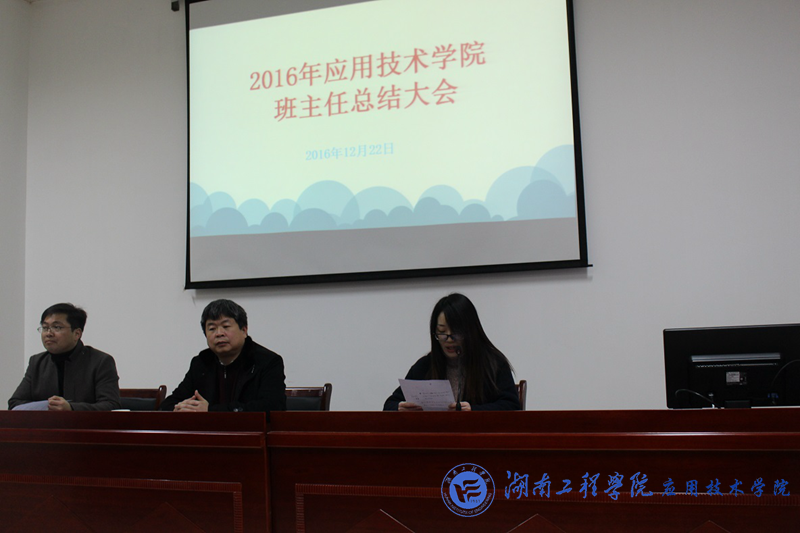 12月22日下午2:30,beat365官网在新校区召开2016年度班主任工作总结大会。党总支书记李爱国,党总支副书记徐粤宇以及学办全体辅导员、班主任到会。本次大会由徐粤宇主持。