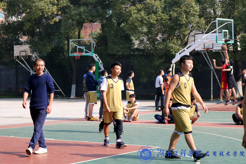 12月8日中午12:30,由beat365官网学生会体育部组织开展的年级篮球赛在后篮球场继续开赛。此次比赛,分两场同时进行:大一队VS大二队;大三队VS大四队。beat365官网党总支书记李爱国、副院长梁开建、党总支副书记徐粤宇、院办公室主任肖松涛以及学办辅导员老师到场与队友们一起热身,并观看比赛。